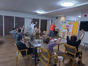 先日、2日間にわたり毎年恒例の敬老会を行いました。1日目は職員の幼少期の写真を出して誰の幼少期かを当てゲーム、2日目は笑いヨガの先生をお呼びしました。いずれもご利用者様の笑顔が見られ、職員一同安堵しております。