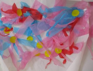 午後からの活動では、午前中見たコスモスをお花紙を使って再現することを行いました!「コスモスってこんな形だったような…?」「たくさん咲いてた!」とお友達と話をしながら作品を作る子ども達☆完成作品をお友達と見合わせ、笑顔溢れていました(*^▽^*)