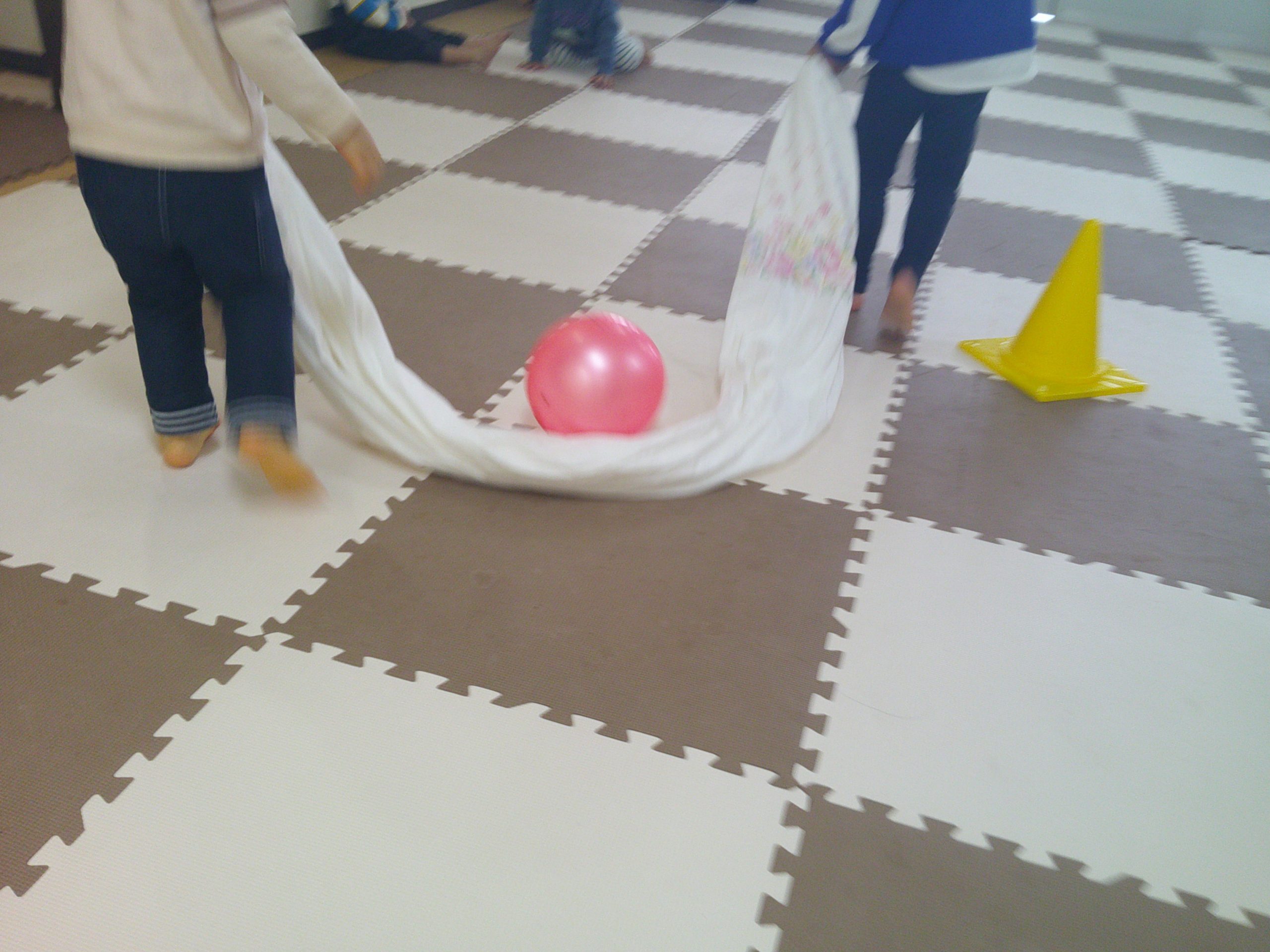 シーツと床の間をくぐる・2人で協力してシーツをねじる動き…といった内容も行いましたが
