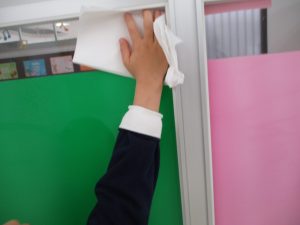 始まる前は掃除と聞いて「えーそうじしたくないんだよ」と訴えるお子さんもいましたが、いざ始まるとスイッチが入ったようで、「どこ拭いたらいい?」「こっちも汚れてるよ」と積極的に取り組む姿がありました☆