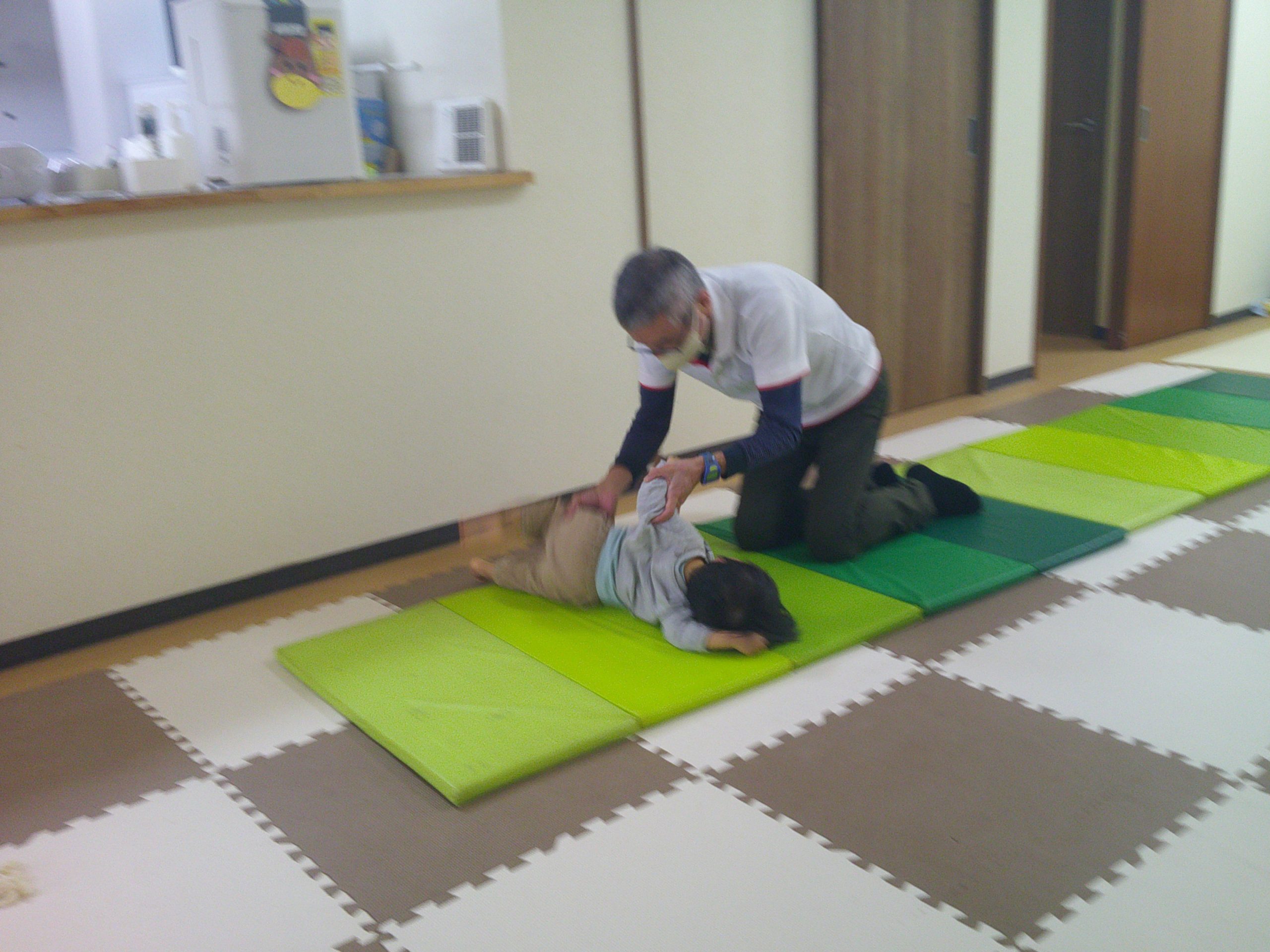 はじめにマットの上をコロコロと転がったり…