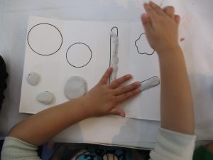 1月2日は雪が降り寒い一日となりましたね。寒さに負けずISHIZAKIの子どもたちはみんなとっても元気に来所してくれました。今日はみんなの大好きなねんど遊びを行いましたよ。形が書いてある台紙に合わせて粘土を貼ってもらいました☆「せんせーい、ねんど足りなーい」の声が!!どうやったら全部に貼れるかな?少しちぎってみようか?余っているお友達にもらおうか?いろいろ考えながら見てみて~!できた!できた!と大喜びでした♪